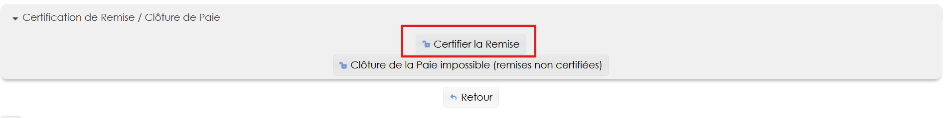 Dans le bloc “Certification de Remise / Clôture de Paie”, cliquer sur “Certifier la remise”.