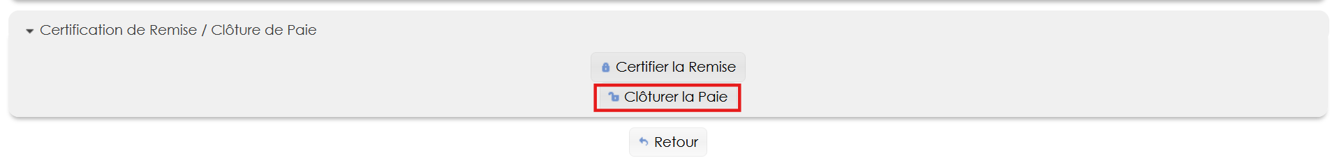 Dans le bloc “Certification de Remise / Clôture de Paie”, cliquer sur “Clôturer la Paie”.