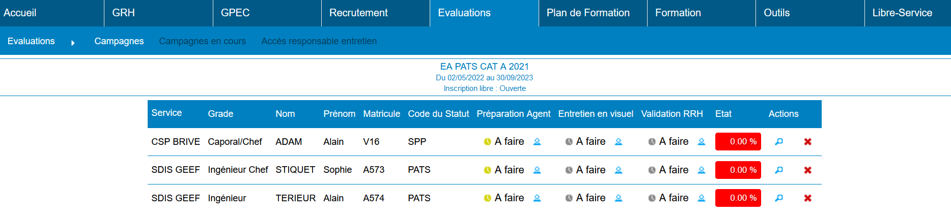 Le module Evaluation permet de gérer les campagnes d’Entretien