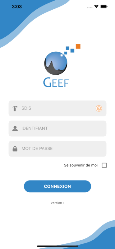 La connexion à l’application mobile se fait avec les mêmes identifiants que sur GEEF web.
