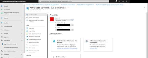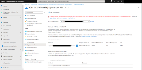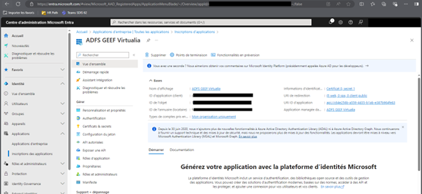 - La valeur du champ « ID d’application (client) » doit être mis dans le paramètre « SSO-AAD : CLIENT_ID » de l’Ecran « Outils > Paramètres > Paramètres » dans GEEF/Virtualia V5 ;