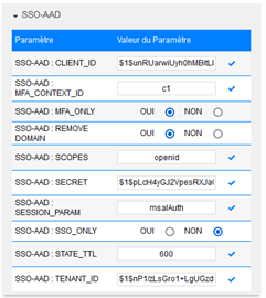 - MFA_ONLY : Permet d’indiquer que tout utilisateur se connectant à l’application doit avoir passé le critère d’authentification à facteurs multiples lors de la connexion à Azure Active Directory. Ce paramètre peut également être géré côté Entra. Recommandé : « NON ».