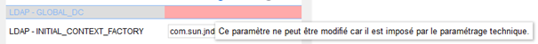 Lorsqu’un paramètre est mis dans le fichier de contexte, il n’est plus modifiable à l’écran. Pour autant, son ancienne valeur est conservée en base de données. Il est donc recommandé de vider le paramètre à l’écran avant de le transférer dans le fichier de contexte. Exemple de paramètre géré dans le fichier XML :