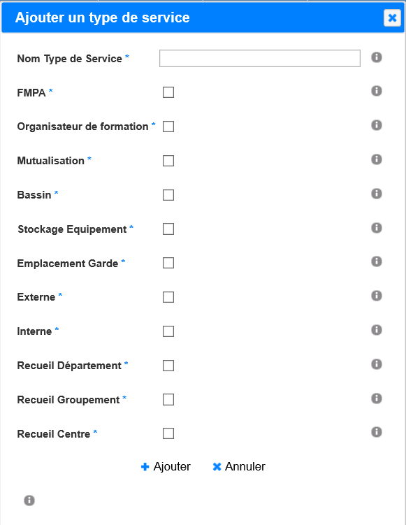 Cliquez sur « Ajouter » afin de lui ajouter des types de service.