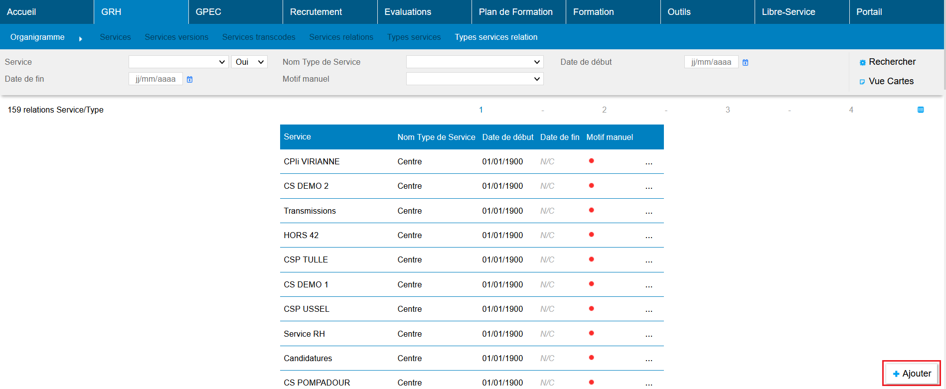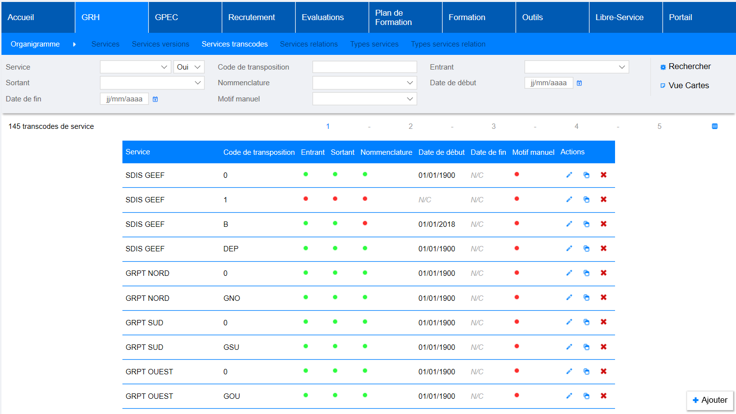A noter: ne pas oublier d’aller ajouter le transcode du nouveau service créé dans GRH/Administration > Organigramme > Service transcodes.
