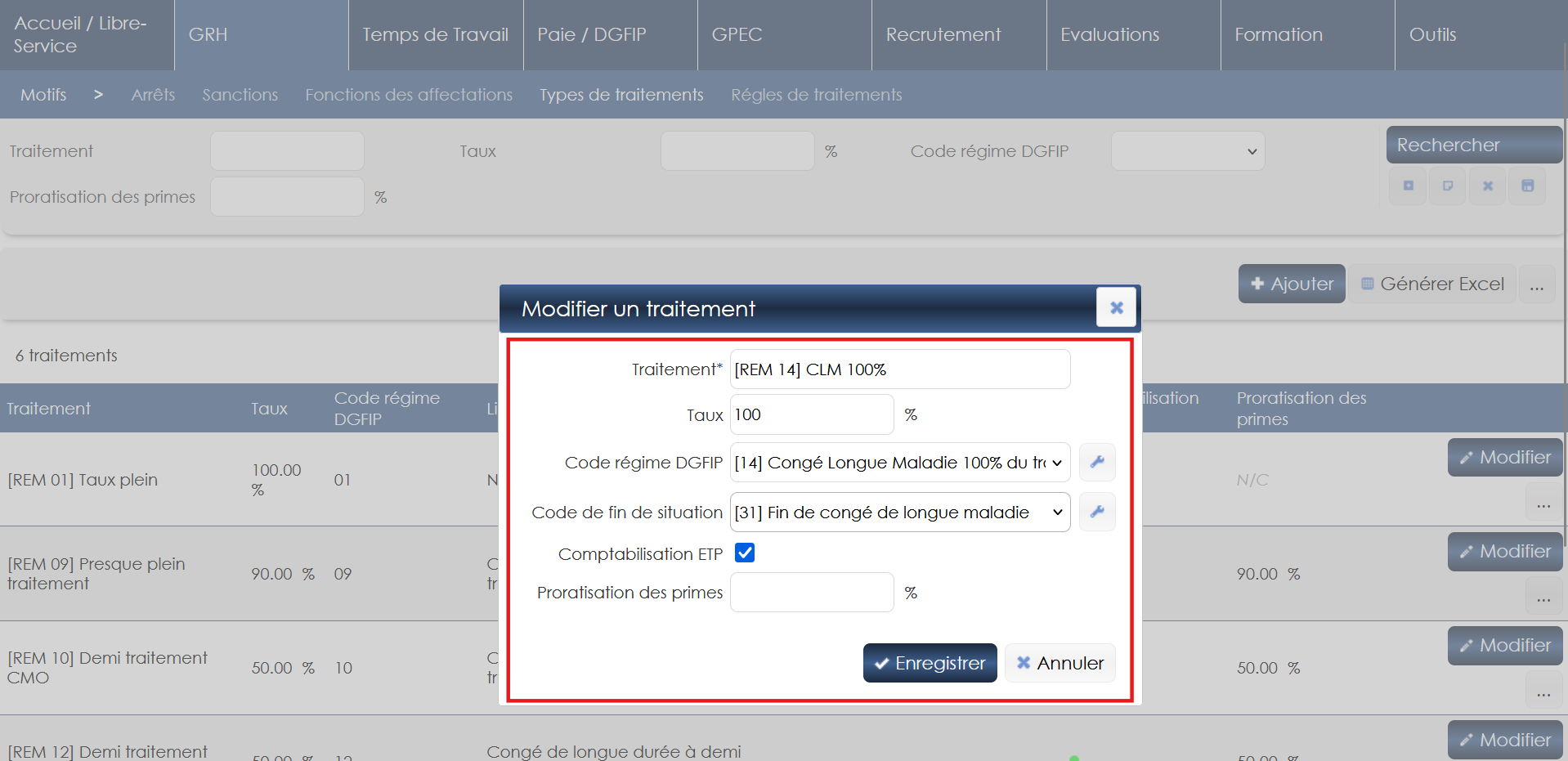 GRH/Administration > Motifs > Types de traitements