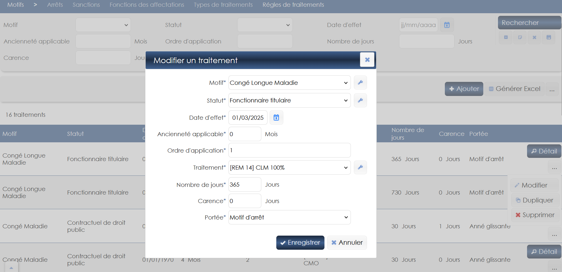 Paramétrer les types et règles de traitement (absences maladie)