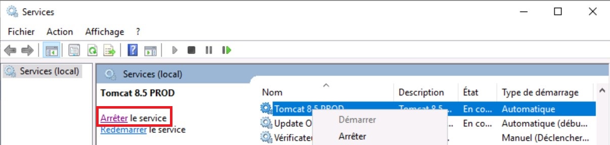 a. Arrêter Tomcat