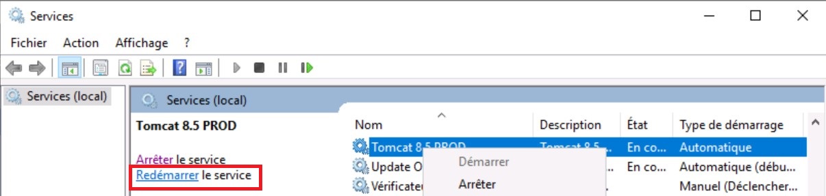 e. Redémarrer Tomcat