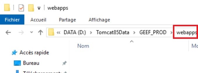 4- Remplacer (ne pas supprimer, surtout lorsque Tomcat est démarré) le fichier dans le dossier Webapps