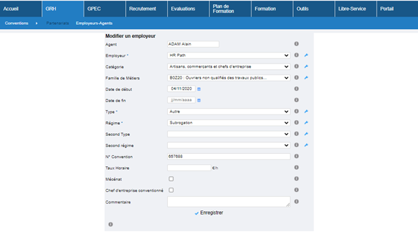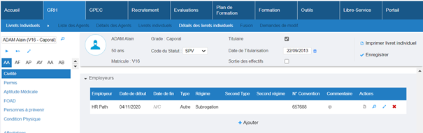 Le LIF des agents permet de stocker certaines informations sur le ou les employeurs, ainsi que les potentielles conventions mises en place.