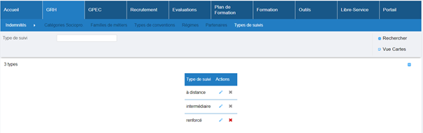 Les types de suivis sont d’ailleurs librement paramétrables dans l’écran « GRH > Indemnités > Type de suivi » :