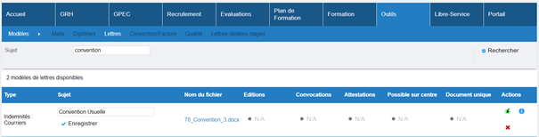 Ecrans Conventions (nécessite le module « Convention-Employeurs »)