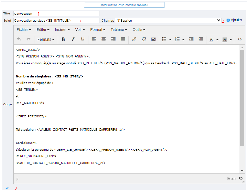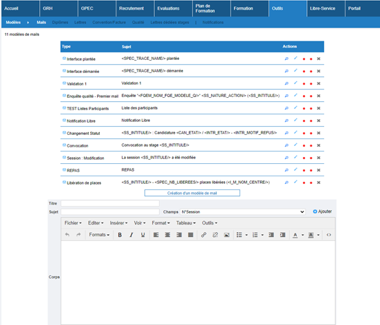 C’est donc à travers cet écran que doivent être créés les modèles de lettres de convocation devant être joint aux mails de convocation.