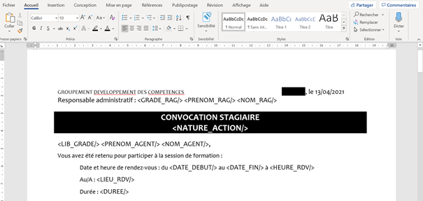 Exemple de modèle de convocation :