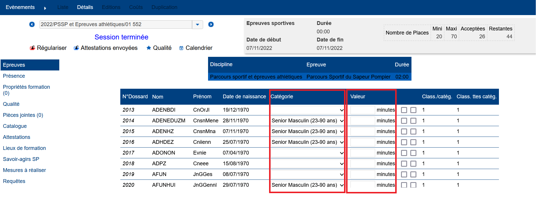 - Valeur : le résultat de l’épreuve est saisi dans le champ “valeur”.