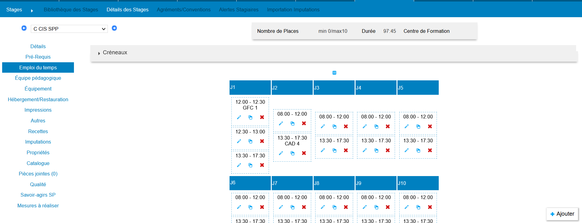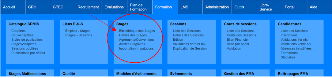 Formation > Stages > Bibliothèque des stages : Aperçu de toutes les sessions de stages existantes