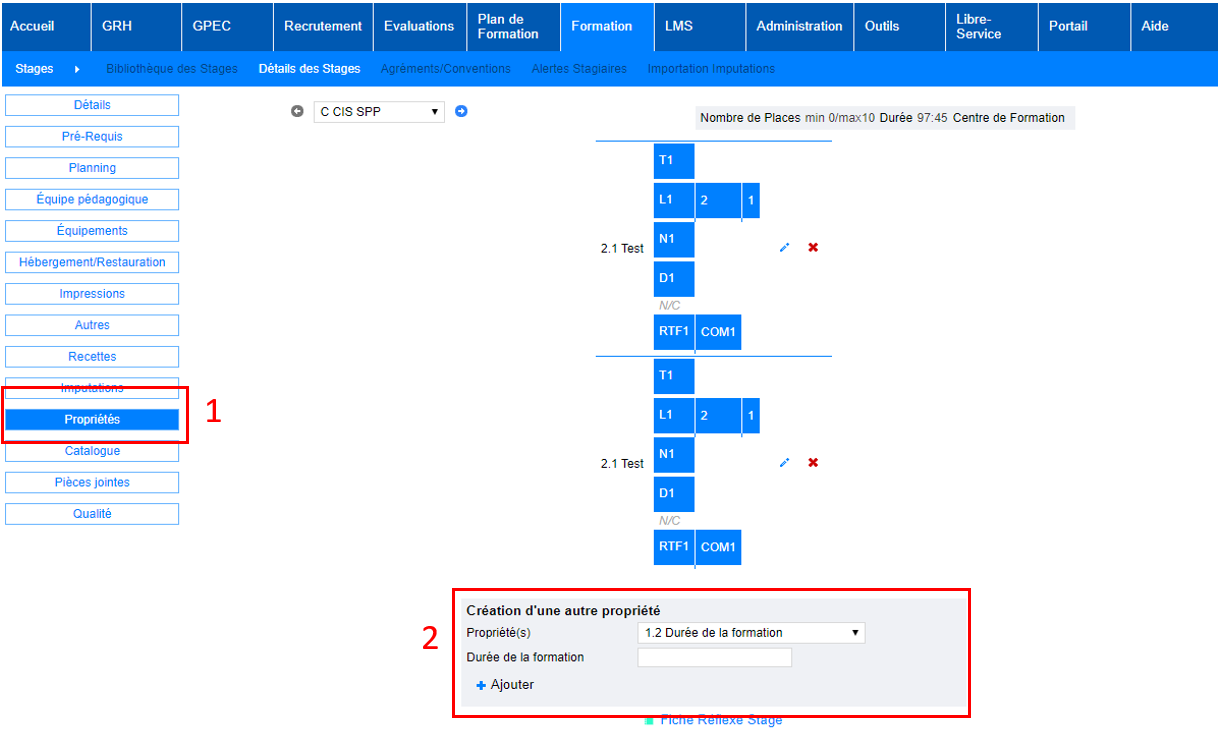 Formation > Administration > Propriétés Formation > Propriétés