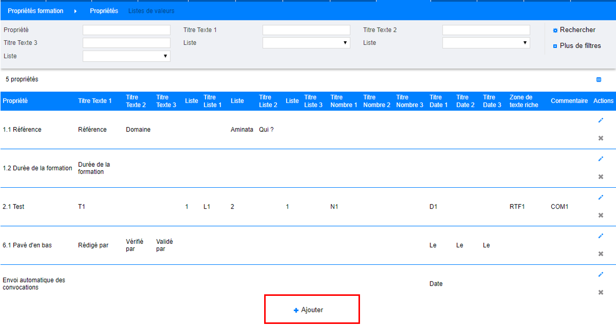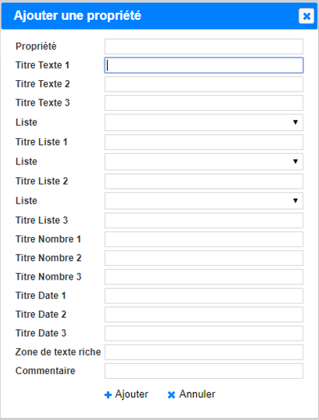 Les propriétés sont paramétrables. En effet, si vous souhaitez les modifier ou en créer cela est possible (cf.partie III).