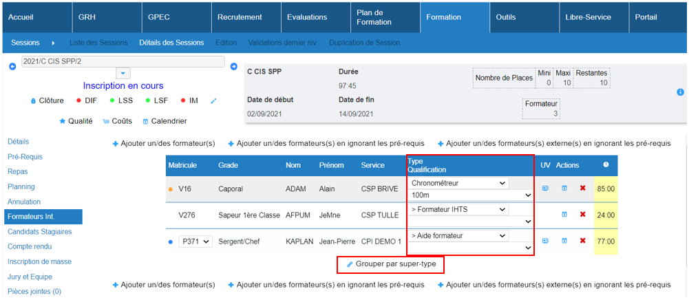 Aussi, la fonctionnalité « Grouper par super-type », permet l’utilisation de plusieurs types pour un même formateur.