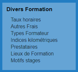 Le taux horaire à appliquer à l’intervention d’un formateur peut se paramétrer dans l’écran « Formation > Divers Formation > Taux horaires ».