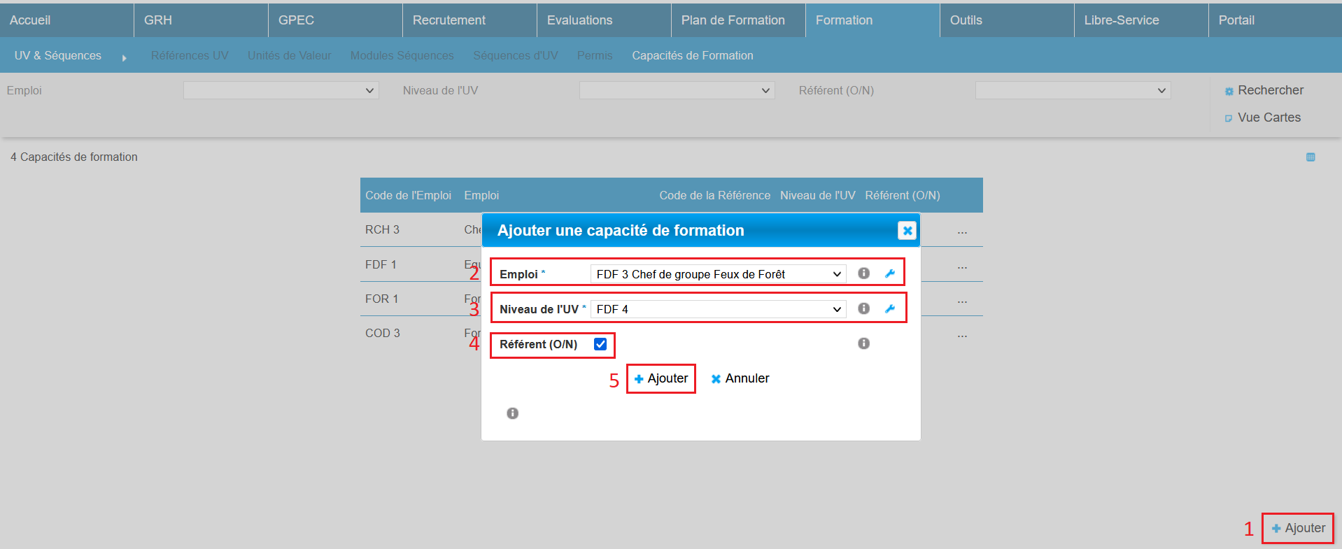 - Cliquer sur “+ Ajouter” pour ajouter la capacité de formation (3)