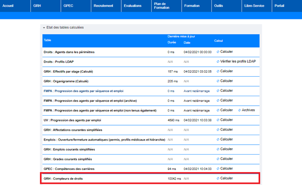 L’écran « Outils > Optimisation BD » permet de relancer le calcul des compteurs de droits :