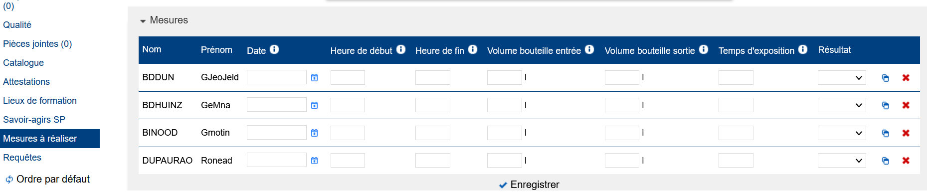 Si la mesure a été ajoutée dans le modèle de stage, alors elle sera visible dans la session associée. Il est également possible d’ajouter une ou plusieur mesures directement dans la session de stage.