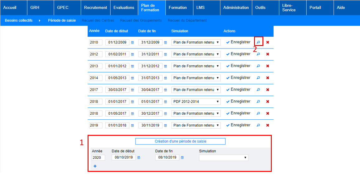 Plan de formation > Besoins collectifs > Période de saisie