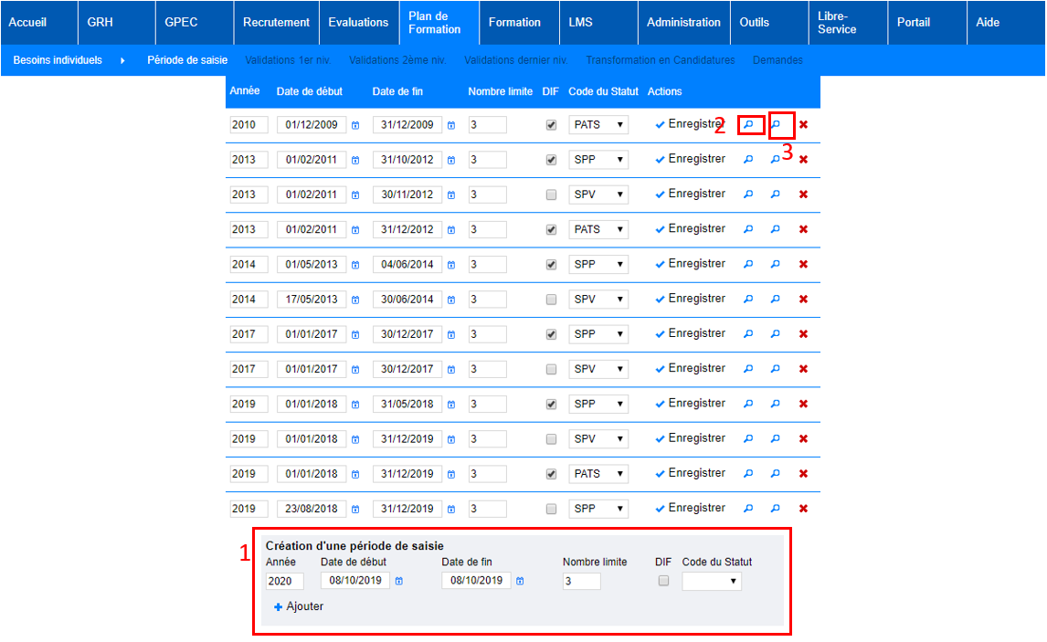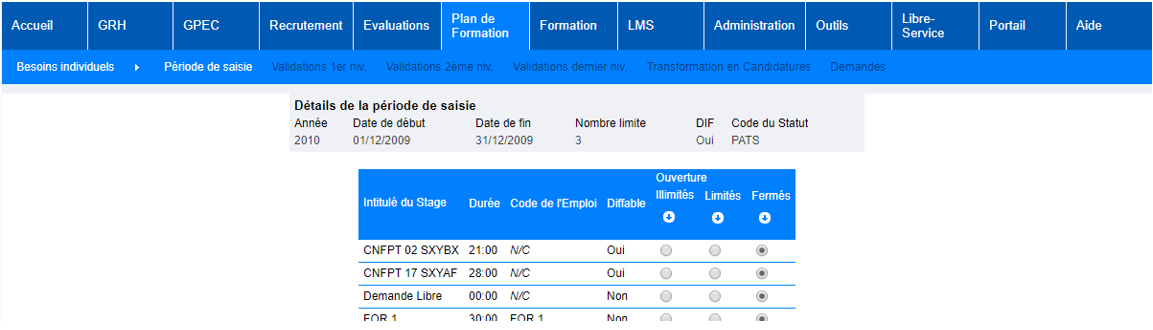 Plan de formation > Besoins individuels > Période de saisie