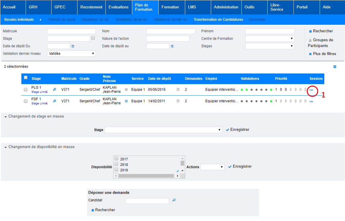 Plan de formation > Besoins individuels > Transformation en candidatures