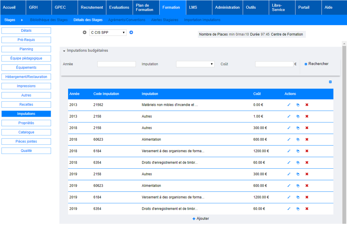 Budget arbitré : Calculé en fonction de ce qui est indiqué dans le modèle de chaque stage : “Formation > Détails des stages > Imputations”.