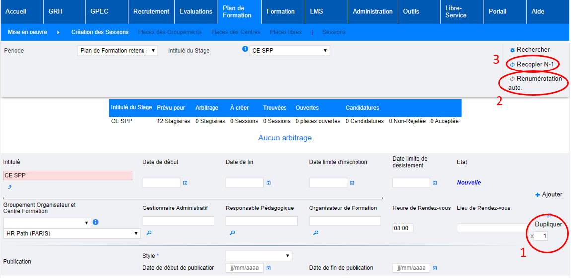 Plan de formation > Mise en œuvre > Création des sessions