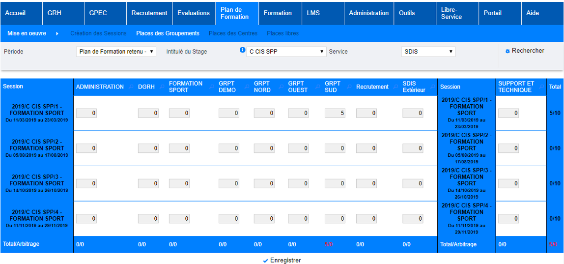 Plan de formation > Mise en œuvre > Places des groupements