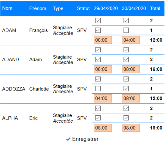 Les heures de présence sont dans un premier temps à l’état de proposition. Elles doivent être sauvegardées en cliquant sur le bouton « Enregistrer ».