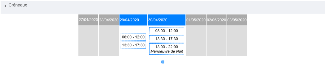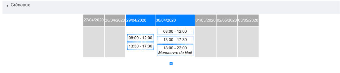 L’ensemble des présences de l’agent seront enregistrées sur le modèle du planning, y compris la manœuvre de nuit. Par conséquent, sur la journée du 30/04 nous aurons 3 entrées.