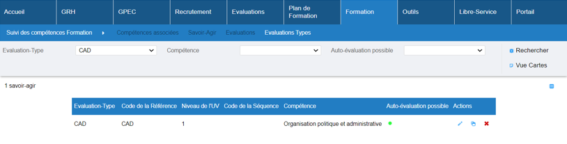 - Actif : statut d’activité de la compétence dans l’évaluation.