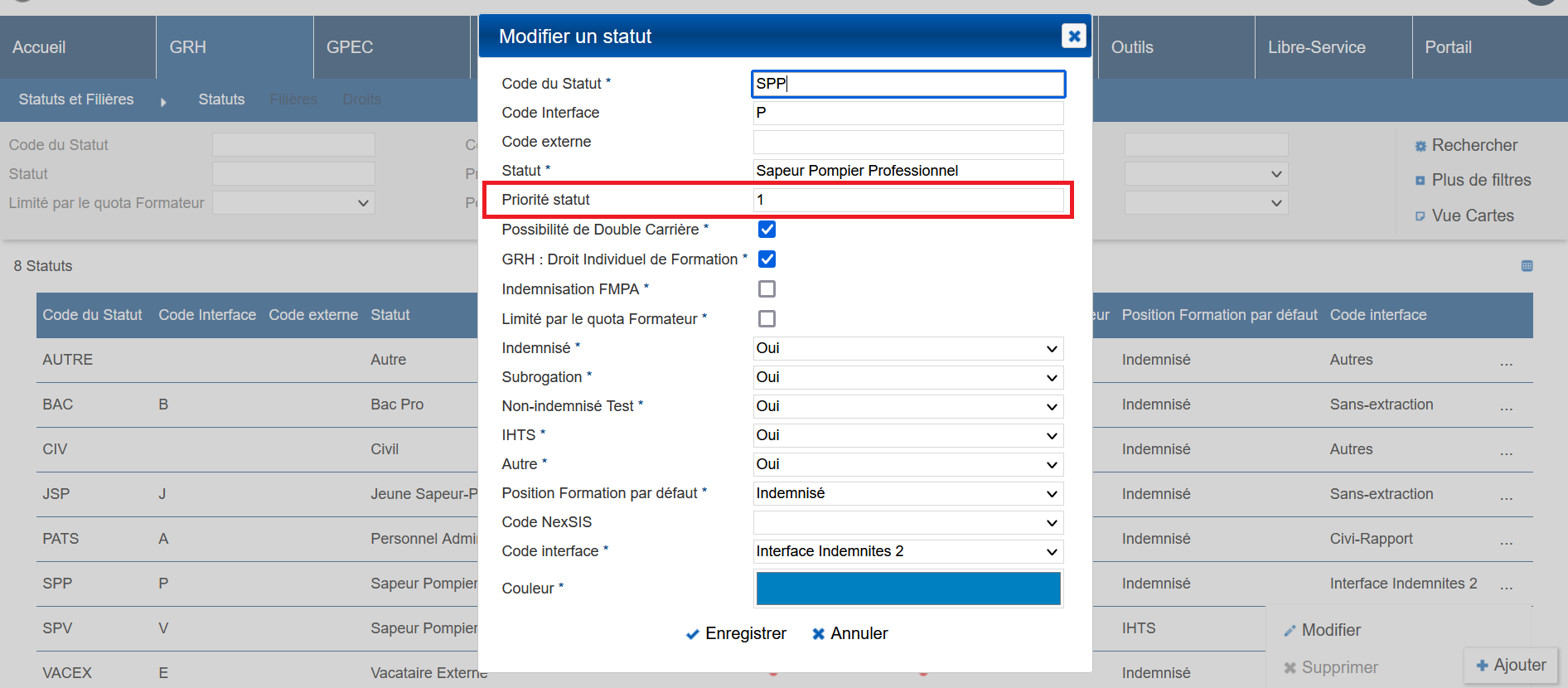 L’ordre de priorité d’un statut se défini dans “GRH > Administration > Statuts et Filières > Statuts”.