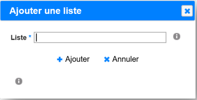 - Il est d’abord nécessaire de créer une liste de réponse, en cliquant sur “ajouter” en bas de page. Une liste peut être utilisée dans plusieurs questions. Le libellé ne sera pas affiché aux répondants.