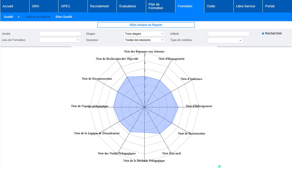 Les écrans seront ensuite accessibles via Formation > Administration > Qualité-formation