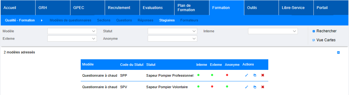 Formation > Administration > Qualité – Formation > Modèles de questionnaires