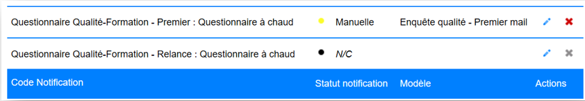 Il est possible d’associer un modèle avec un type de participant mais de paramétrer la notification afin qu’une autre personne reçoive l’enquête. Ainsi, il est possible d’envoyer une évaluation à froid plusieurs mois après la formation, à l’utilisateur validant le 1er niveau de validation des candidatures (ex: chef de centre).