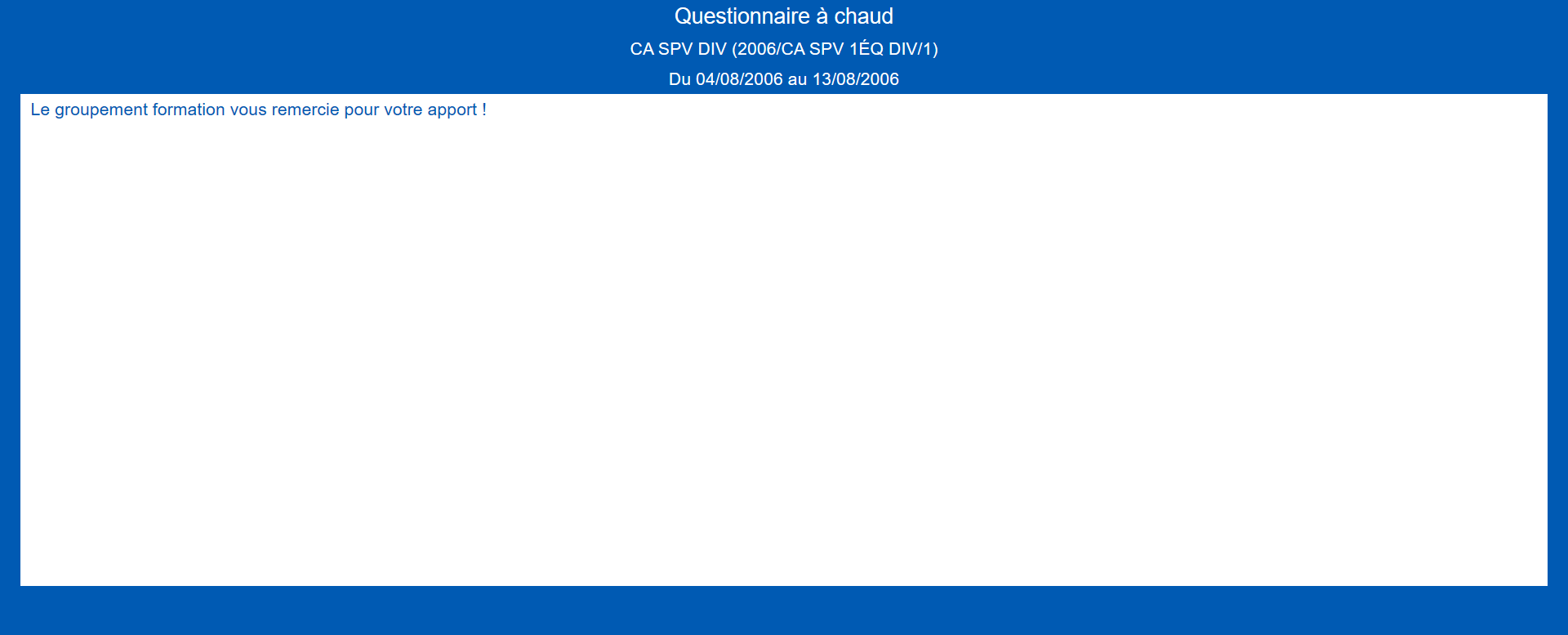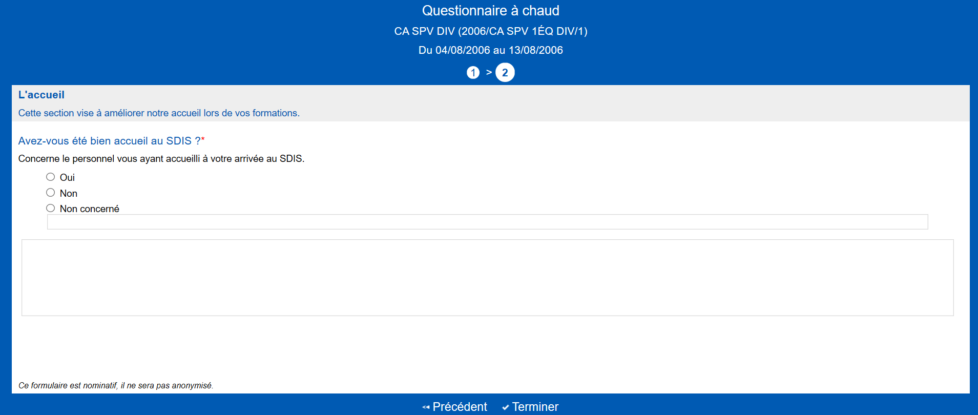 L’accès n’est pas possible via le Libre-Service, mais une version imprimable est accessible dans l’écran « Formation > Sessions > Edition > Autre document > Formulaire ‘Enquête Qualité’ »