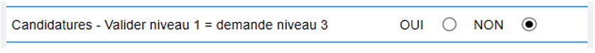 Permet de définir si la validation au premier niveau d’une candidature doit valider au 3ème niveau une demande correspondante du plan de formation, dans le cas où un recueil des souhaits individuels aurait été réalisé.