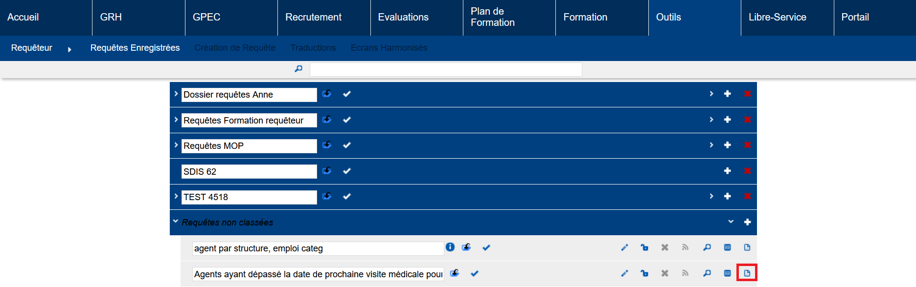 - Requêtes (format HTML, CSV, Excel / HTML ou PDF) ;