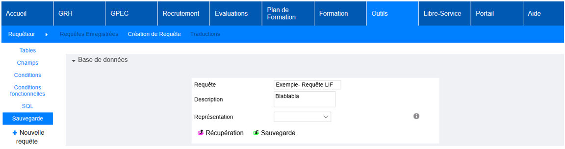 Outils > Requêteur > Création de Requête