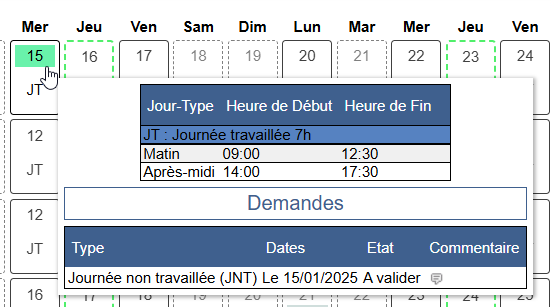 Cette demande est en attente de validation manager (si la validation est demandée dans le référentiel des jours-types).