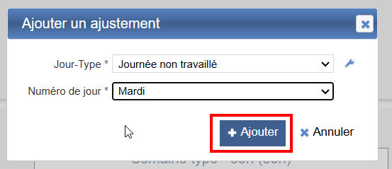 Sélectionner la journée type concernée par cette demande d’ajustement, puis ajouter.