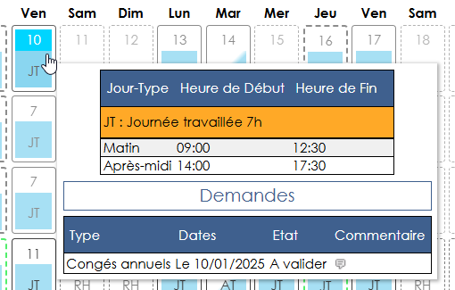 Cette demande est en attente de validation manager (si la validation est demandée dans le référentiel des jours-types).
