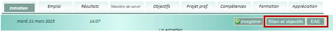 Une page internet s’ouvre, et vous pourrez défiler sur chaque onglet de l’entretien. En cliquant sur bilan et objectifs vous aurez un aperçu du bilan et des objectifs avant l’édition finale de l’entretien. En cliquant sur EAE vous aurez accès à l’aperçu complet de l’entretien.